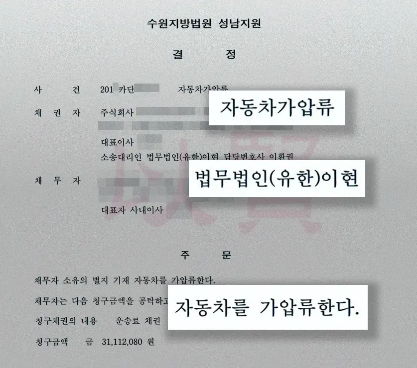 그래서 소송을 시작하기 전, 혹은 동시에 반드시 채무자의 재산을 묶어두는 조치가 필요합니다. 이것이 바로 오늘 이야기할 자동차 가압류입니다. 저희 법무법인 이현에서 진행했던 실제 사건을 통해 이 절차가 떼인 돈을 받는 데 얼마나 결정적인 역할을 했는지 보여드리겠습니다.