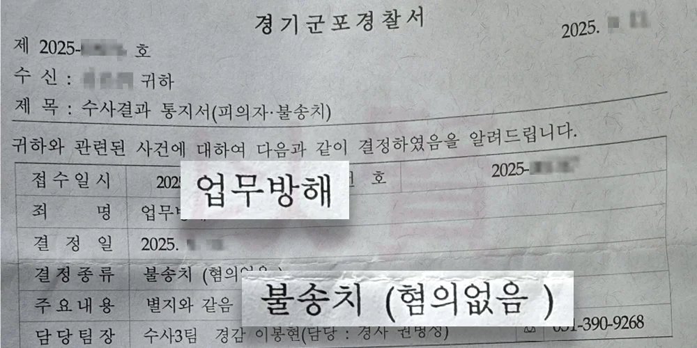 이 사건은 다행히도 검찰에 넘어가지도 않고 경찰 단계에서 종결되었습니다. 경찰은 최종적으로 김지연 씨에 대해 불송치, 그중에서도 ‘혐의없음(범죄가 성립하지 않음)’ 결정을 내렸습니다.