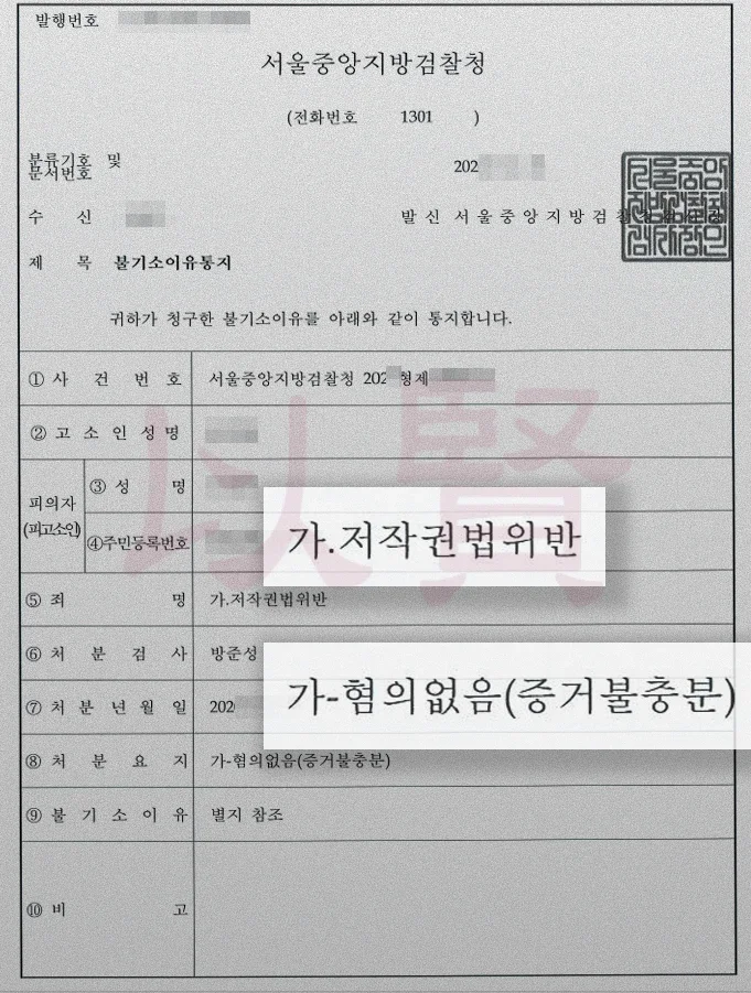 형사 처벌 및 전과 기록: 저작권법 위반은 엄연한 범죄입니다. 유죄가 인정되었다면 벌금형 이상의 처벌을 받아 전과자가 될 수 있었습니다.