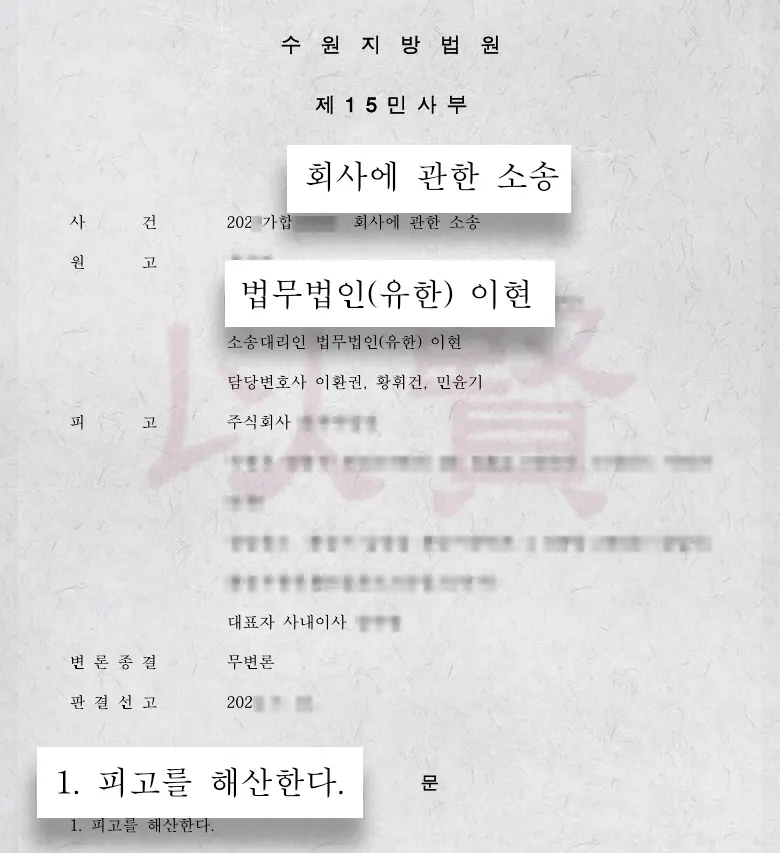 [성공사례] 해산 판결부터 잉여금 회수까지 완벽한 시나리오