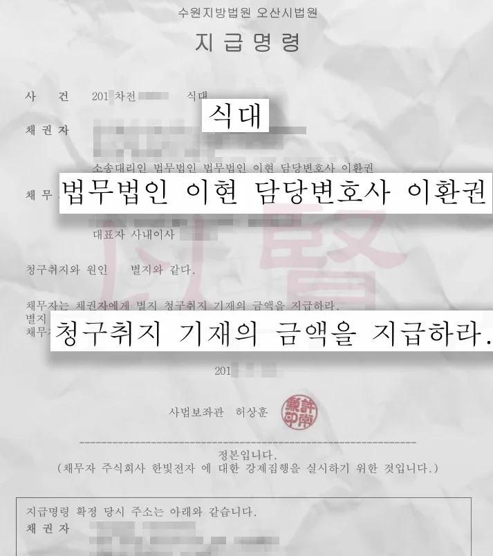 처음에는 변호사 비용 아끼겠다고 인터넷 뒤져가며 혼자 지급명령 신청을 해볼까 고민도 했습니다. 그런데 법무법인 이현과 상담하고 나서, 제가 혼자 진행했다면 정말 큰일 날 뻔했다는 걸 깨달았습니다.