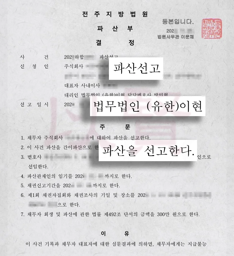 ✅ 이현 성공사례|폐업 상태에 이른 회사, 파산 절차로 구제