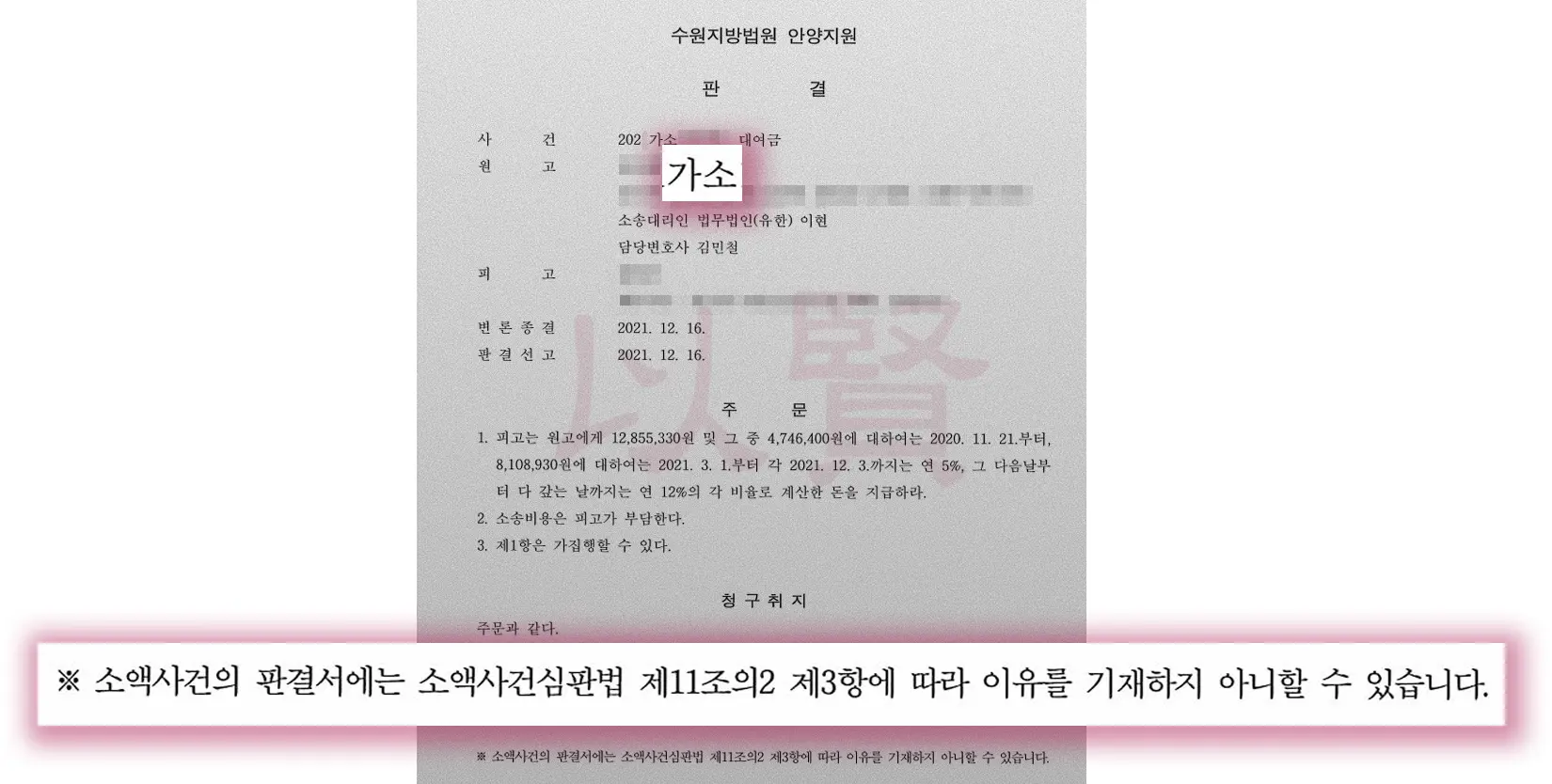 결과는 어땠을까요? 수원지방법원 안양지원은 신속하게 의뢰인의 손을 들어주었습니다. 복잡해 보이는 사건을 소액사건심판(가소)이라는 급행열차에 태워 빠르게 해결한 전략을 공개합니다.