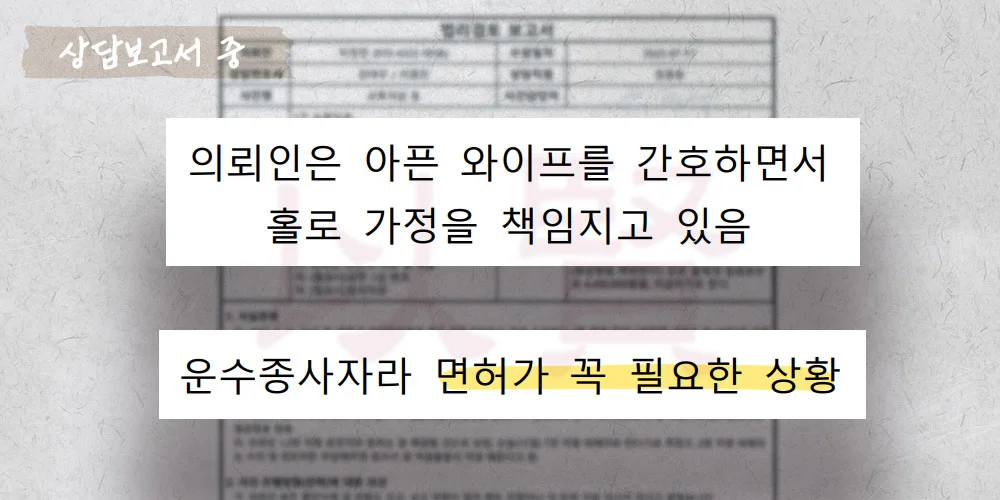 배우자의 질환 치료를 위한 절실한 운전 필요성
