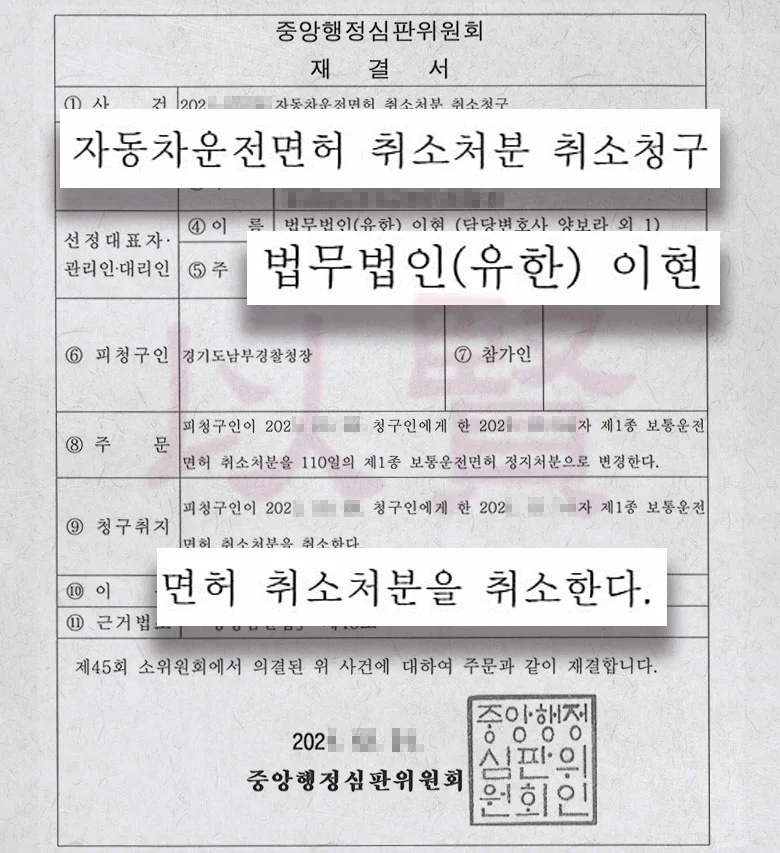 음주 운전으로 면허취소 처분을 받으셨나요?