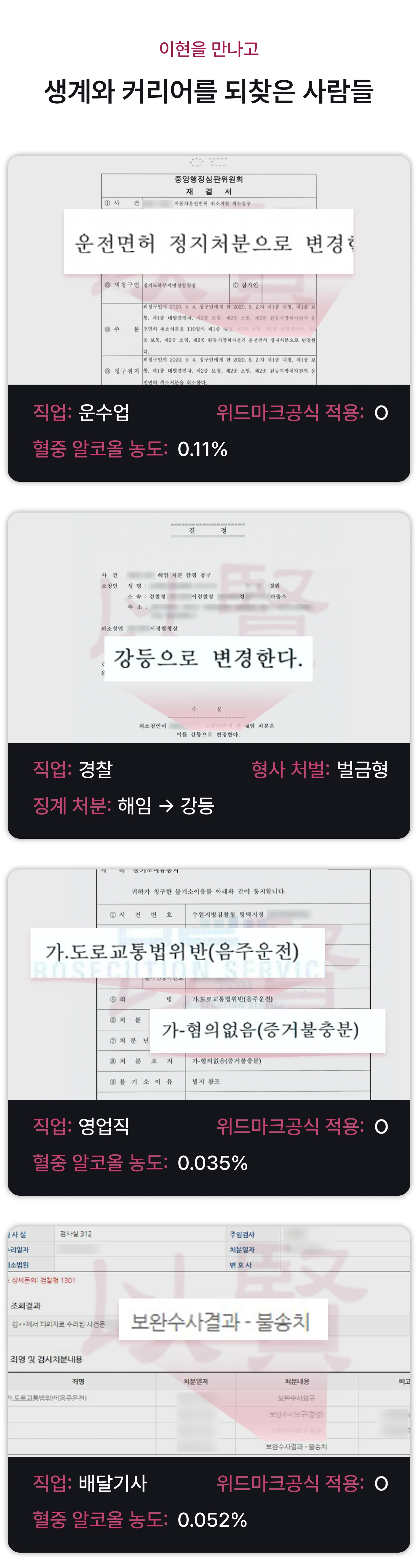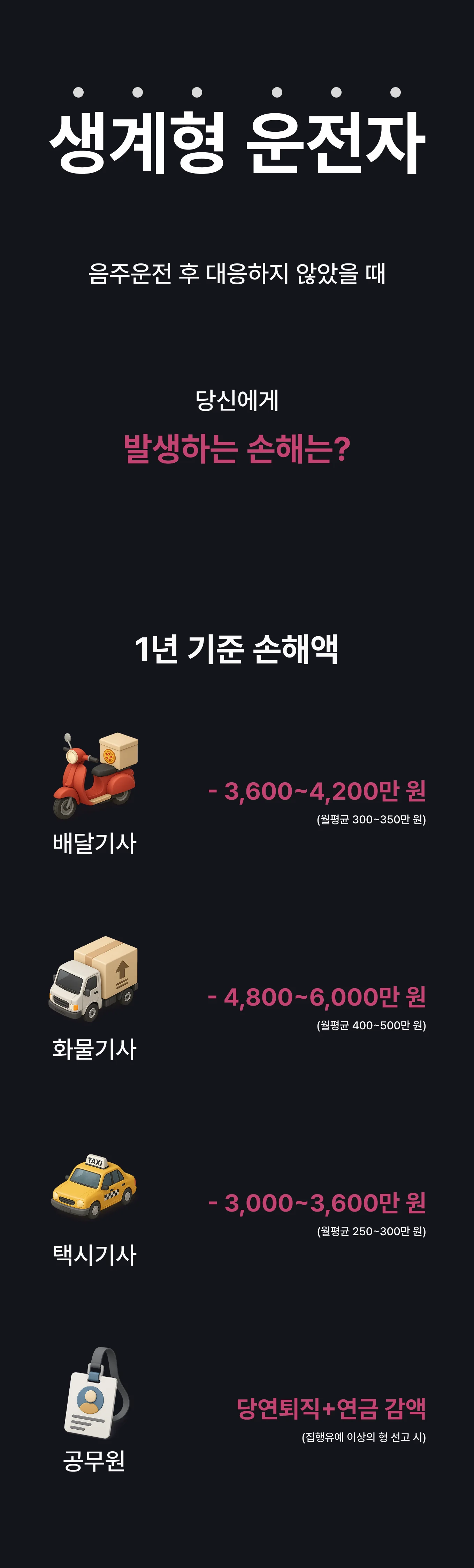 배달·화물·택시·공무원 음주운전 구제 / 행정심판·형사·징계까지 1:1 신속 대응