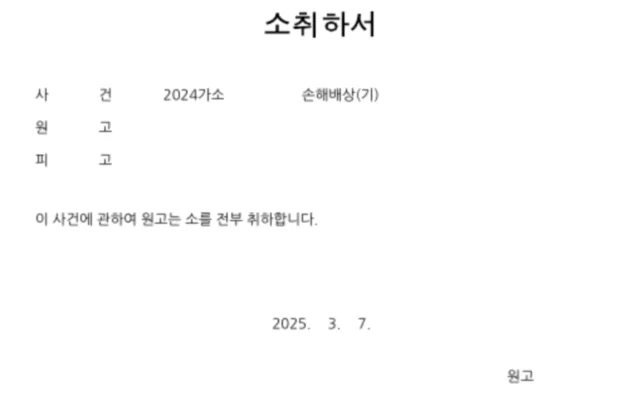 결과: 보험사는 결국 승산이 없음을 깨닫고 청구 소송을 스스로 취하하며 사건은 종결되었습니다.