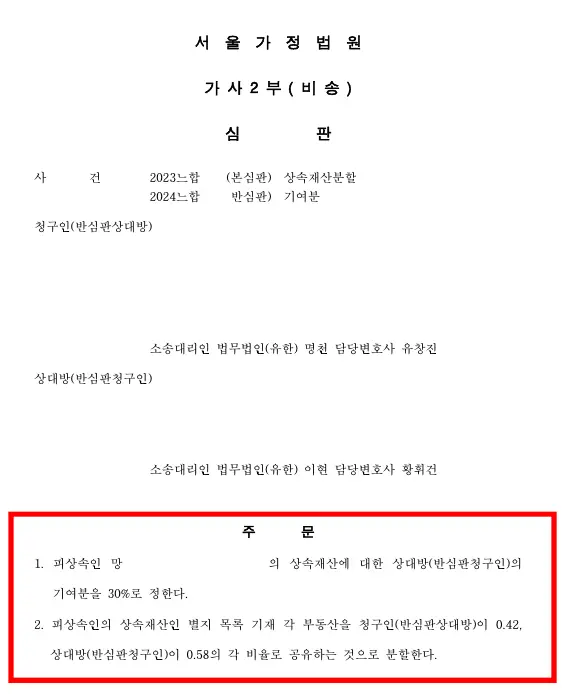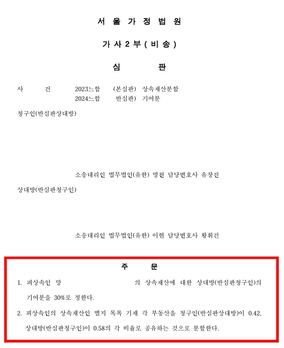 ❷ 소송을 통해 기여분 30%를 인정받았을 때