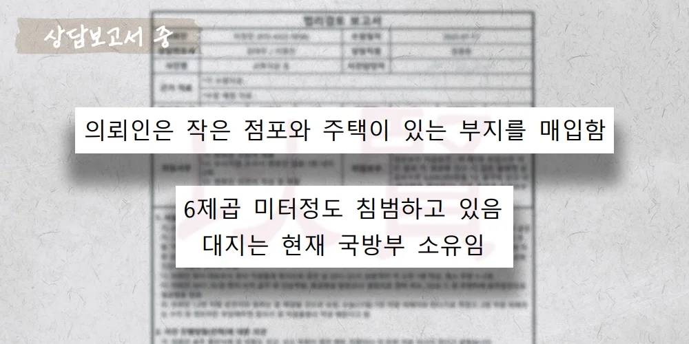 어느 날 “건물 부지 일부가 국유지 위에 걸쳐 있다”는 통보를 받았습니다. 문제의 땅은 단 6㎡였지만, 건물 일부가 걸쳐 있었기 때문에 강제 철거 위험까지 있었죠.