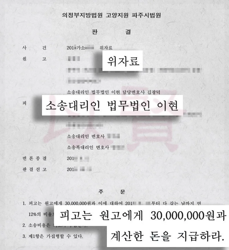 그 결과, 원고의 청구액 3,000만원 전액이 인용되었습니다.