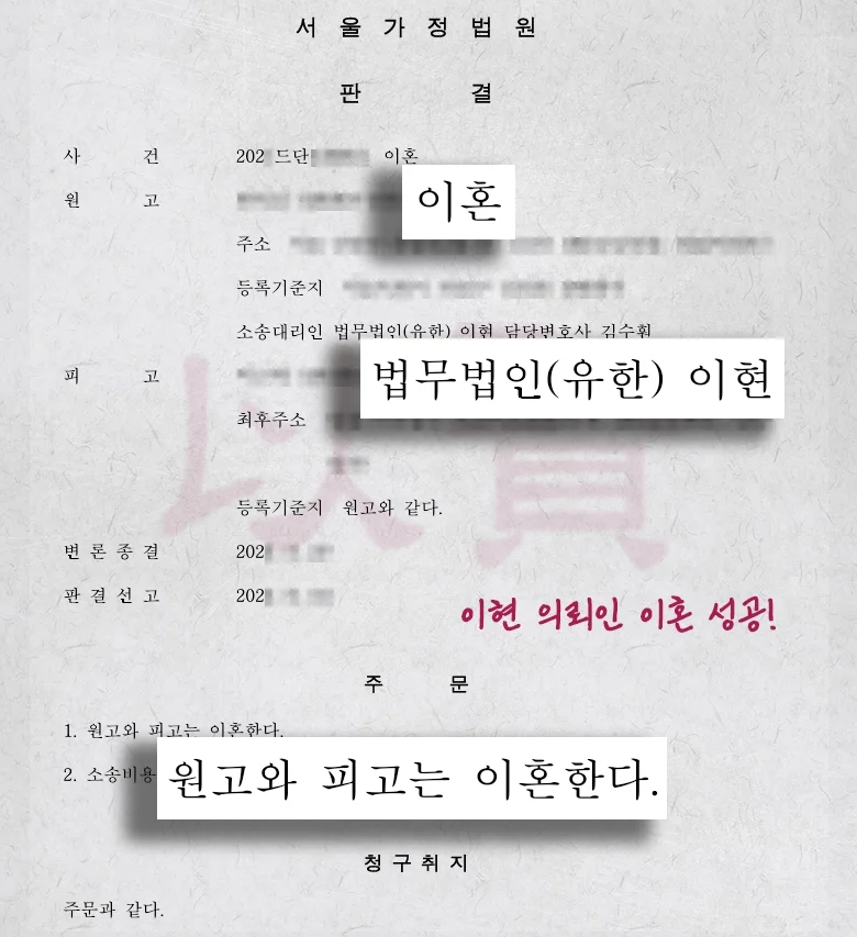 법무법인(유) 이현은 악의적 유기와 생사불명 등 특수한 사정을 가진 분들을 위해 끝까지 함께하겠습니다.