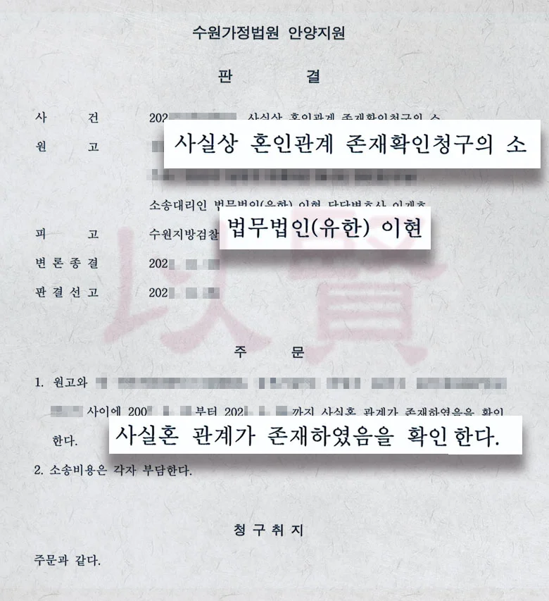 제척기간 준수, 관할법원 선택, 피고 특정 등 절차적 요소들을 정확히 처리하는 것이 중요합니다. 법무법인 이현은 A 씨 사건에서 14년간의 동거 관계를 체계적으로 정리하여 법원의 인정을 받았습니다.