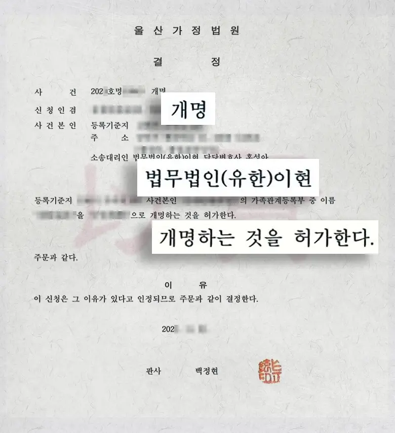 울산가정법원 개명허가 결정문, 무엇이 달랐을까