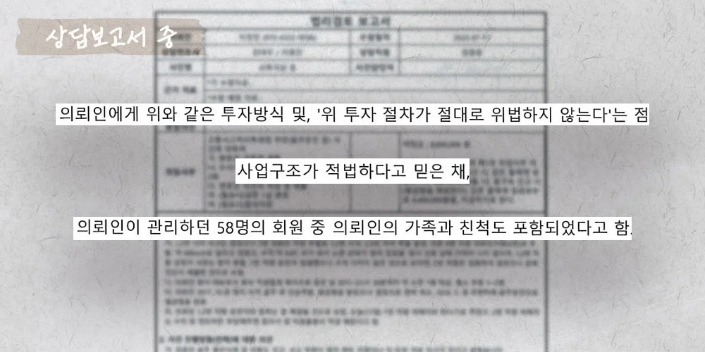 자신의 돈을 투자하면서 구조가 합법이라고 믿었음