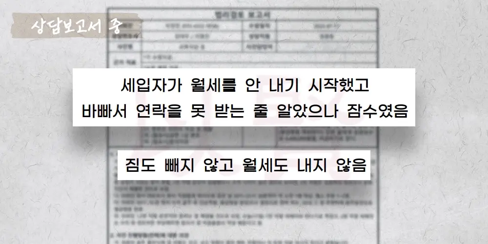 이때부터 월세도 안내는 세입자의 진짜 '악질' 행태가 시작되었습니다.