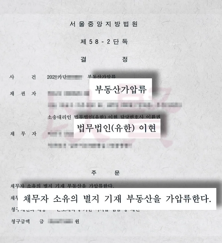 저희 이현은 우선 임금 청구의 소를 제기하여 지급해야 할 금액을 구체적으로 특정했습니다. 또한 상대방이 재산을 빼돌리지 못하도록 부동산 가압류를 신청했습니다.