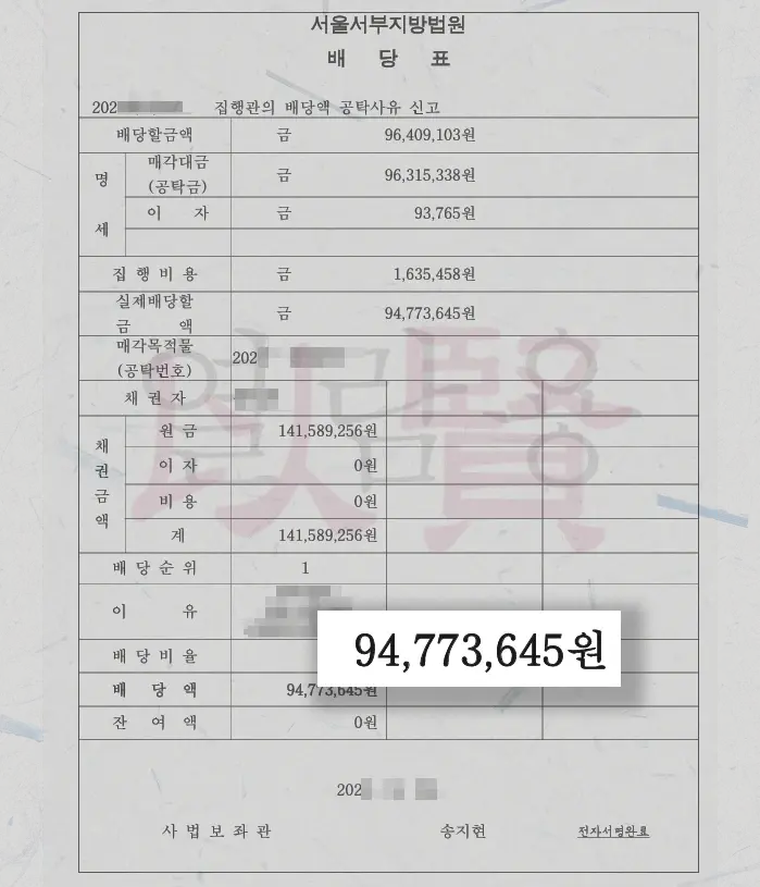 저희 법무법인 이현은 끈질긴 추적 끝에 채무자가 겉으로 드러난 현금 자산은 부족하지만, 특정 증권사 계좌에 상당한 규모의 주식을 보유하고 있다는 사실을 확인했습니다. 그리고 2025년 9월, 마침내 약 9천 4백만 원을 배당받으며 사건을 성공적으로 마무리했습니다. 그 구체적인 과정은 다음과 같습니다.