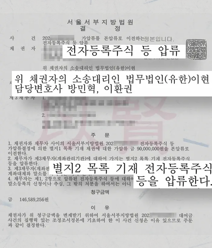 [성공사례] 전자등록주식 특별현금화명령으로 9,400만 원 받아낸 과정